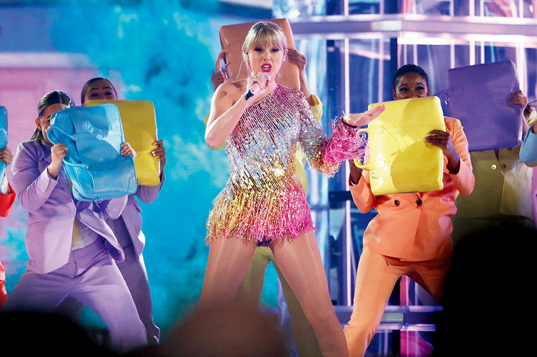 在美国拉斯维加斯举行的公告牌音乐奖颁奖典礼上,歌手泰勒·斯威夫特在开场秀上表演