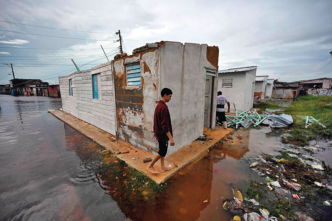 11月7日,在古巴巴塔瓦诺,一名男子走过受损房屋。飓风“拉斐尔”6日以三级飓风强度横穿古巴西部地区,