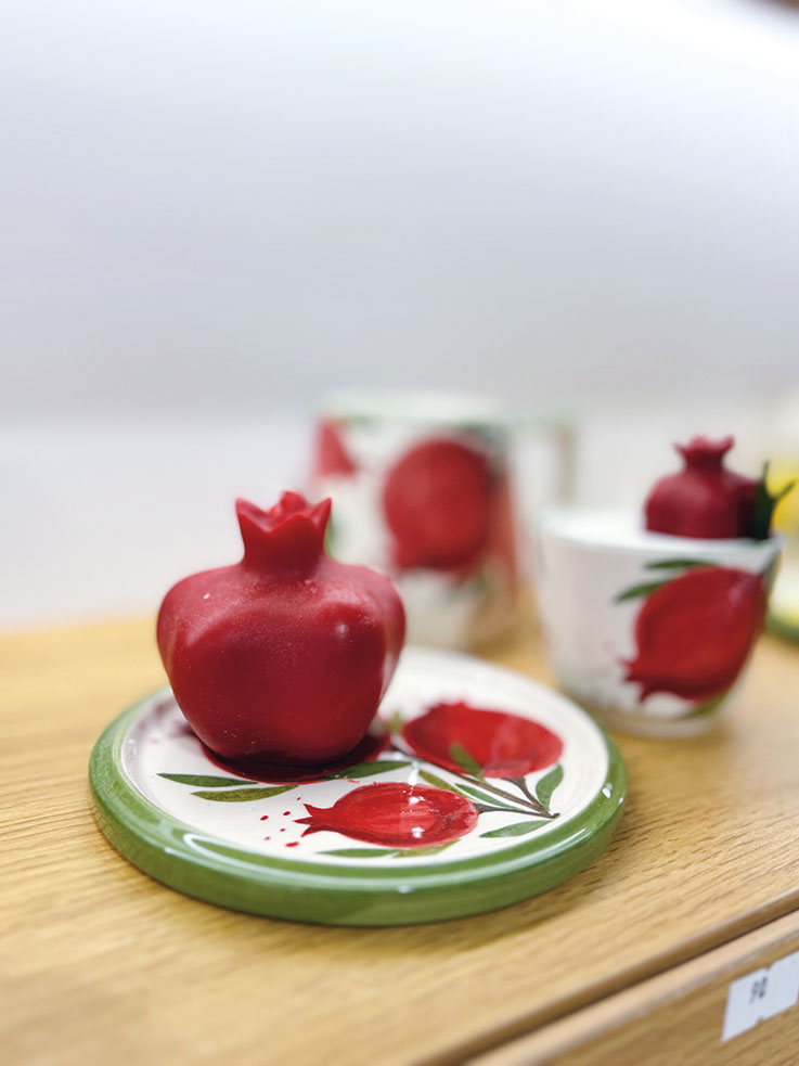 置身巴库,你会发现,石榴几乎无处不在。书籍里有,绘画里有,诗歌里有,电影里有……走进超市,红彤彤的石榴立马映入眼帘;翻开菜谱,菜肴里的石榴籽闪耀着红宝石般迷人的光芒;商场橱窗里、柜台上,各种石榴造型的工艺品琳琅满目。夜晚,它又可能化身烛台,从“王冠”中吐出一朵朵温馨的火苗……