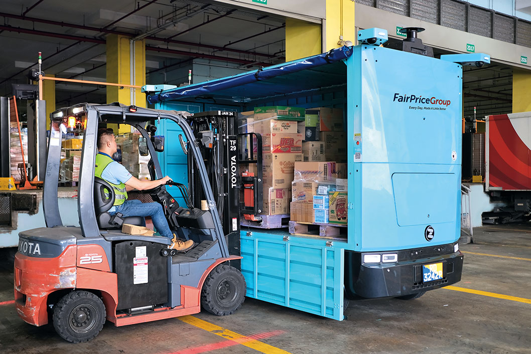 2024年11月4日,在新加坡,中国智能无人车制造商九识智能的无人物流车参与新加坡FairPrice集团运营车队物流运输