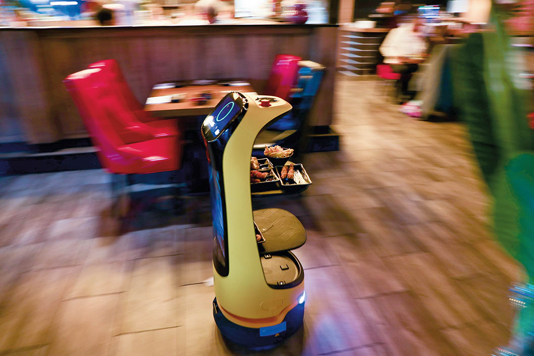 机器人“葫芦”在比利时东佛兰德省圣尼克拉斯市的“美味”餐厅送餐