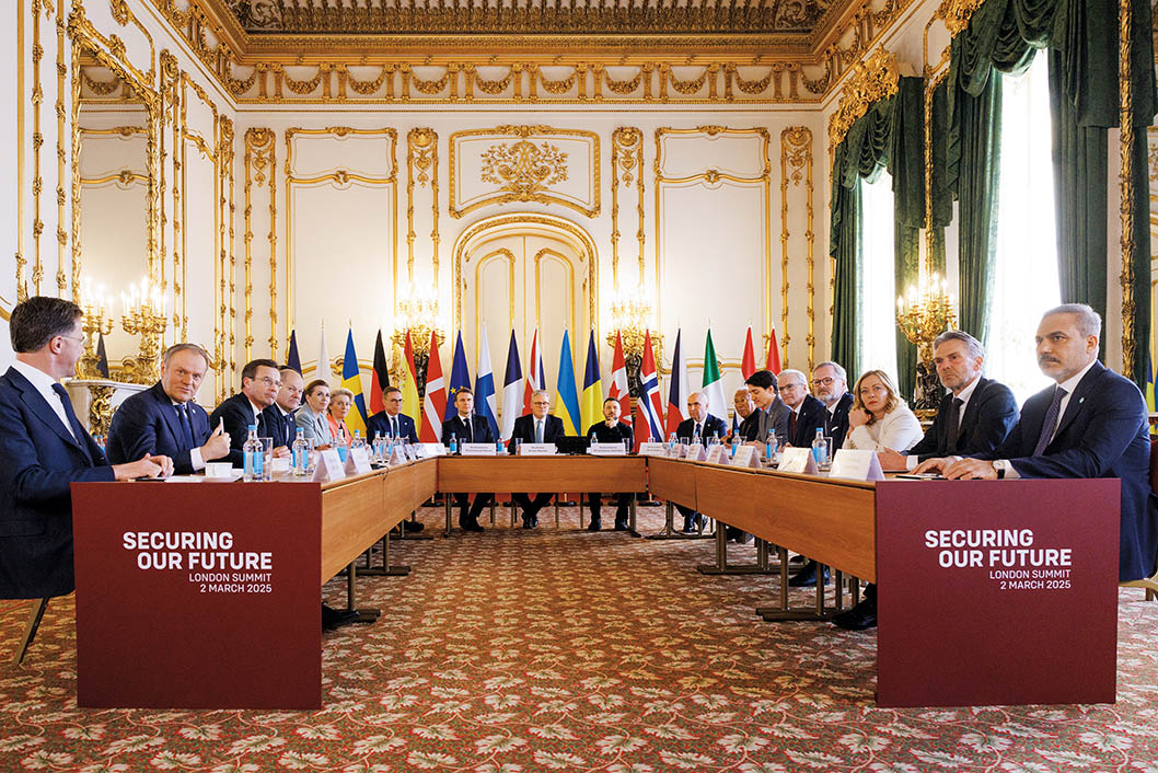 2月14日,欧洲领导人在慕尼黑安全会议上警告称,任何未经乌克兰参与达成的协议都将无法实施。2月24日,欧洲理事会主席科斯塔和欧盟委员会主席冯德莱恩访问基辅,以示对乌克兰的支持。3月1日,英国首相斯塔默宣布,将向乌克兰提供22.6亿英镑的贷款,并称这笔资金是七国集团提供的“乌克兰特别收入加速计划”的一部分,计划的总规模达到500亿美元。3月11日,欧盟和北约的32个国家的高级军事指挥官在法国会晤,讨论英法提出的乌克兰安全保障框架,据法媒报道,除英国和欧盟成员国外,来自土耳其、加拿大、澳大利亚的参谋长和北约高级别代表也参加了此次会晤。