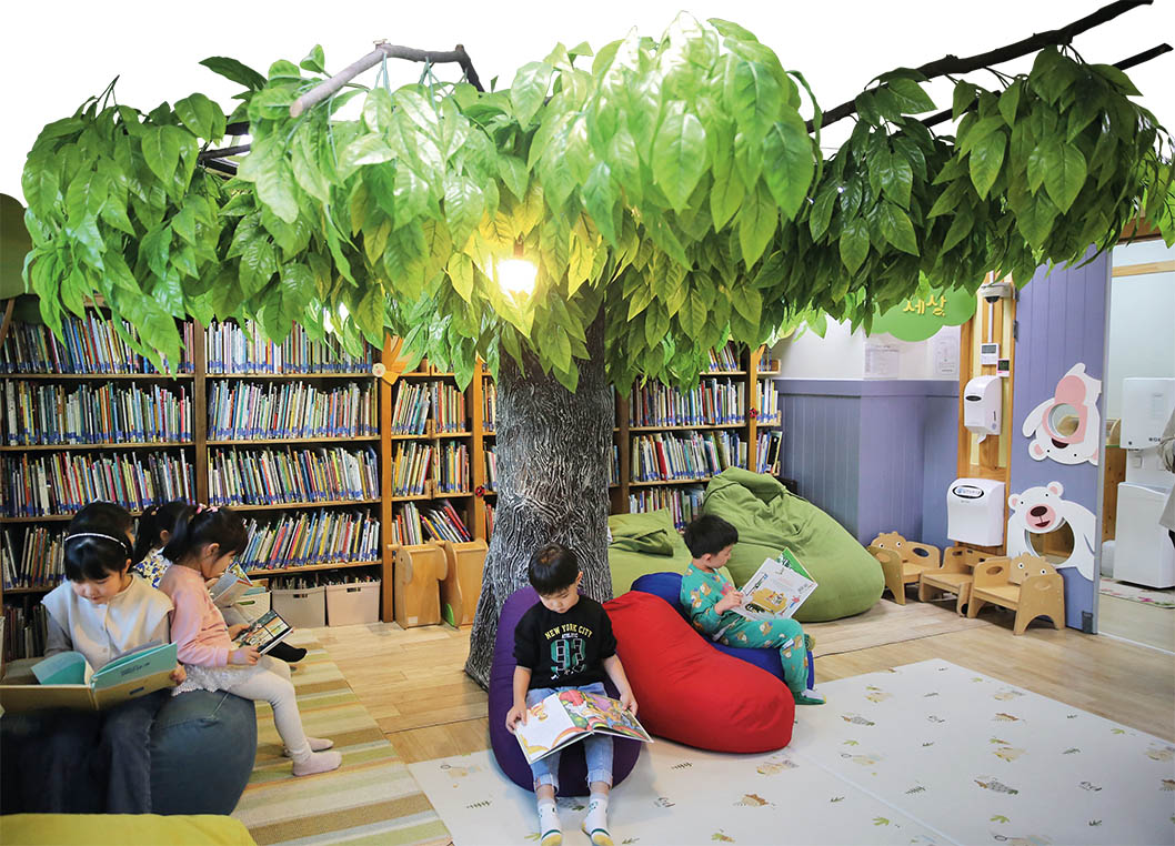 2024年10月31日,小朋友在韩国政府世宗市办公区内的幼儿园看书