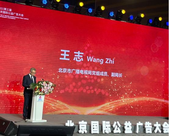 图为北京市广播电视局党组成员、副局长王志致辞。