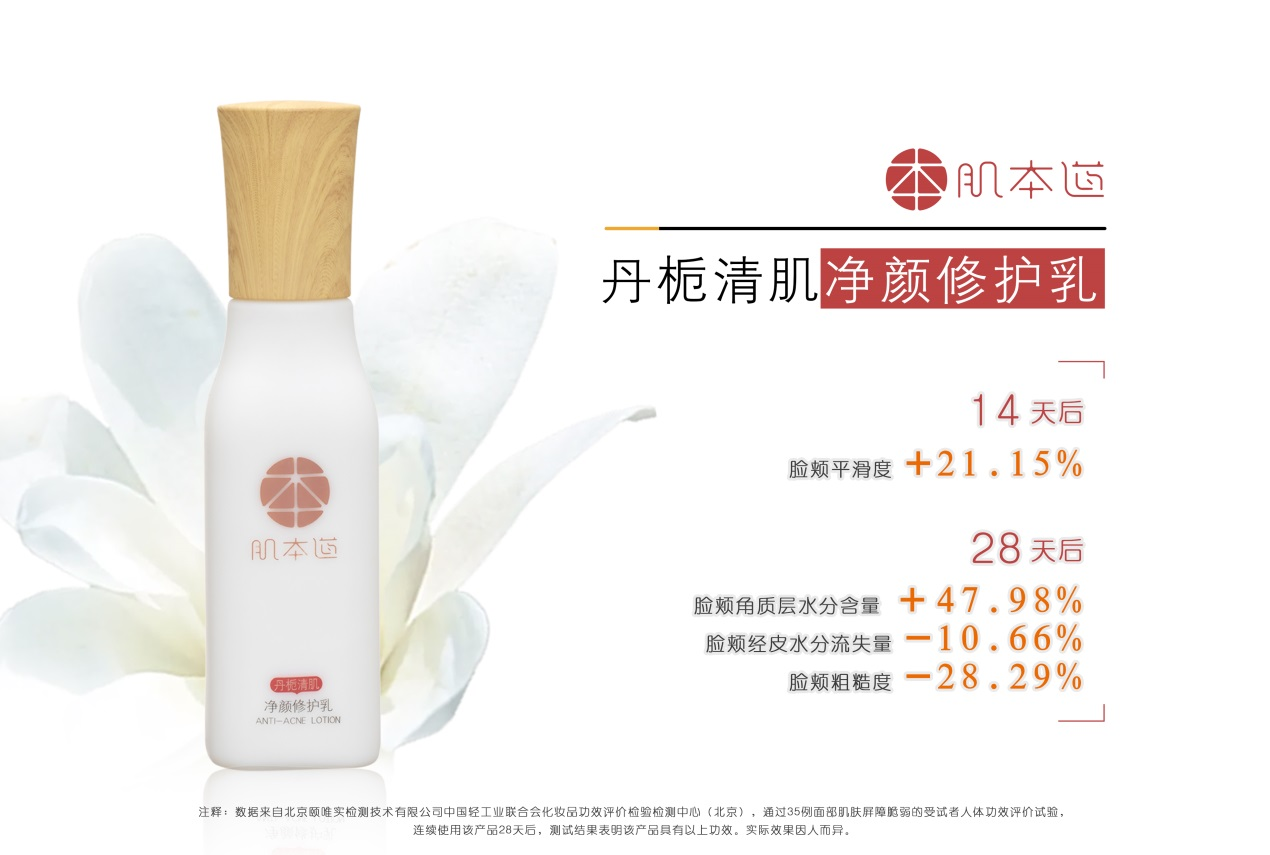 肌本道全系产品,分为丹栀系列和润生系列共11款产品。丹栀系列蕴含植物成分,共有丹栀清肌净颜氨基酸洁面膏、柔肤水、平衡水、修护乳、祛痘凝胶5款产品,可搭配使用。其中,丹栀清肌净颜修护乳含有多种成分,例如烟酰胺、红没药醇、牛油果树果脂、牡丹根皮提取物、积雪草等,可修护肌肤,缓解皮肤干燥,柔润肌肤,使皮肤更加细腻水润。