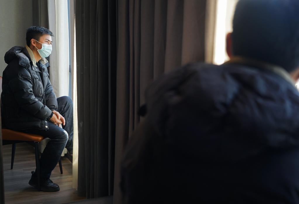 在靖安县一家酒店,钱芳勇望向窗外,即将见到亲生父母,心情有些复杂(1月30日摄)。