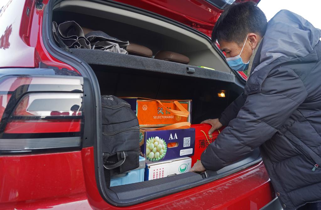 在靖安县,钱芳勇在整理为亲生父母带来的礼物(1月29日摄)。