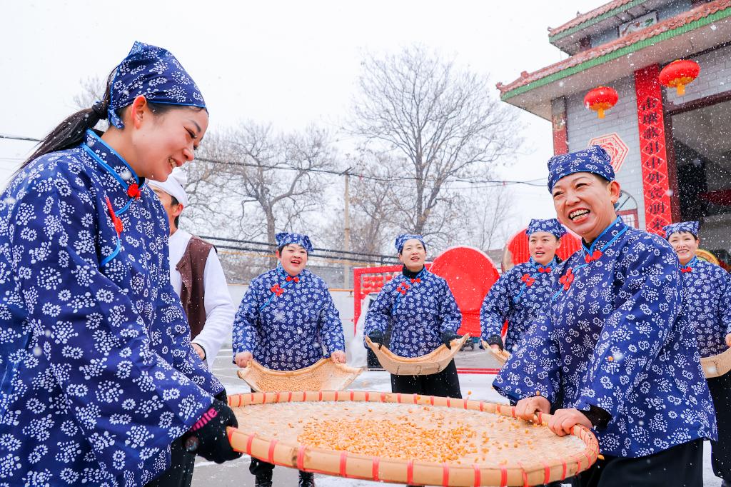 新华社太原1月21日电(记者赵阳)“咚咚嚓,咚咚嚓,咚嚓咚嚓咚咚嚓……”农历腊月初十,山西省临汾市尧都区刘村镇泊庄村的大戏台前,人头攒动,锣鼓、舞龙、唢呐……各种乡村非遗技艺在戏台上轮番展示,现场还搭起了直播设备,为现场村民和近800万网民奉上了一场精彩的“村晚”演出。