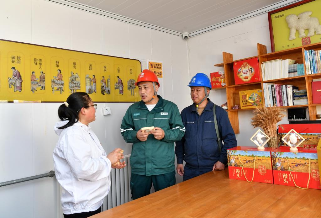 4月21日,吴玉良(中)和同事在河北沧州渤海新区黄骅市滕庄子供电所辖区一家食品企业走访、了解用电情况。