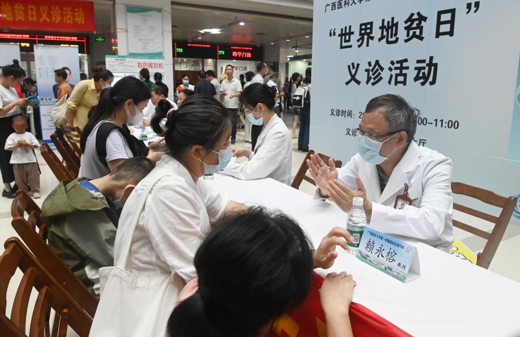 5月8日,在广西医科大学第一附属医院,医生在义诊现场接受咨询。