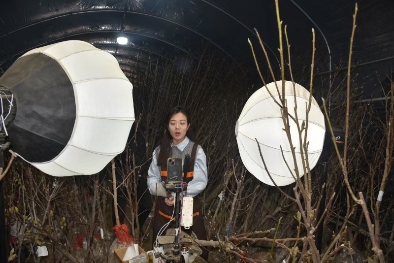 在李家白壤村苗木市场,一群手持直播设备的“新农人”格外引人注目。“‘老铁’们,这是两年生的黄金桃苗,苗壮价优,赶紧下单!”主播们现场展示苗木,实时接单发货。