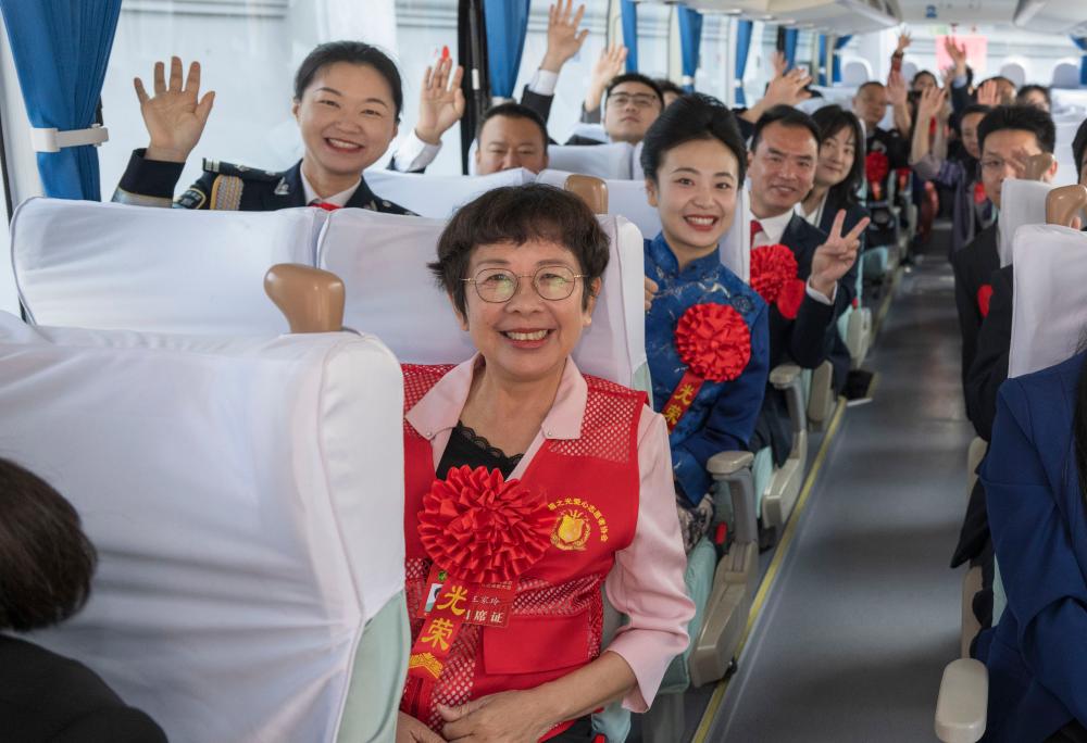 5月16日,出席第七次全国自强模范暨助残先进表彰大会的代表乘车前往会场。