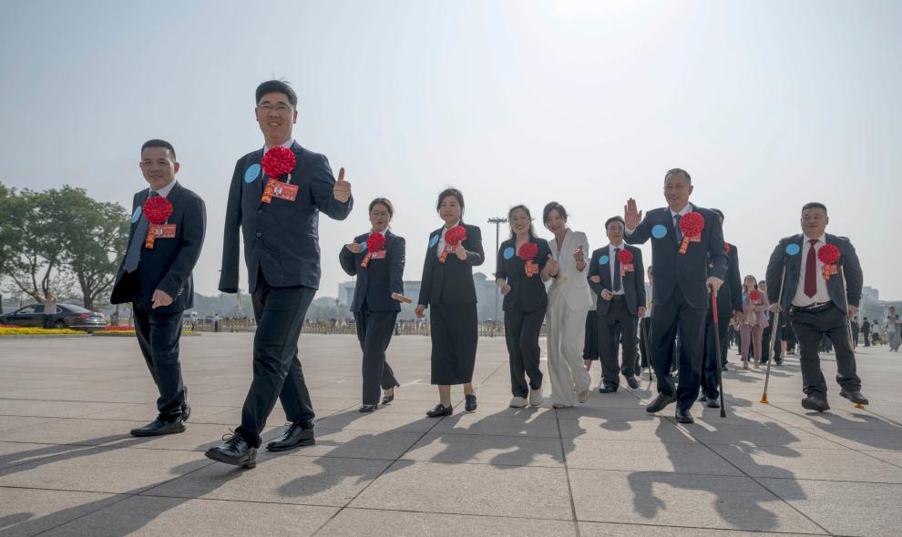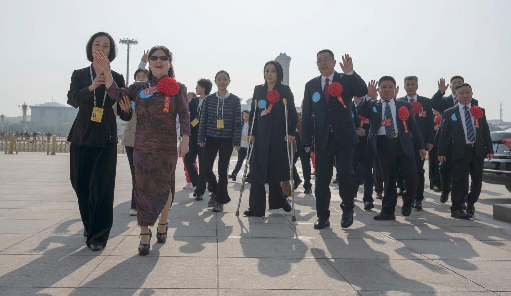 5月16日,出席第七次全国自强模范暨助残先进表彰大会的代表步入会场。