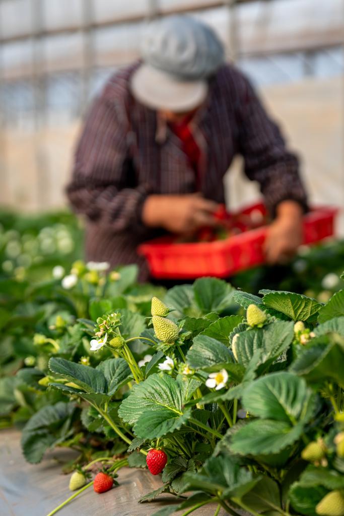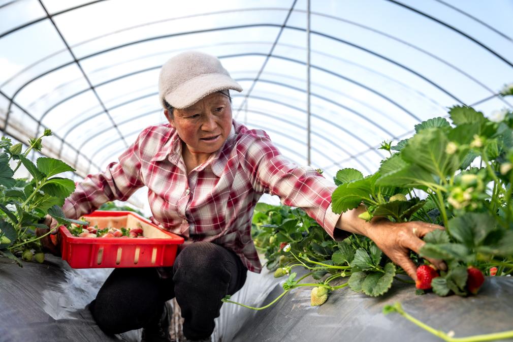 5月15日,工人在巧家县马树镇草莓种植基地采摘草莓。