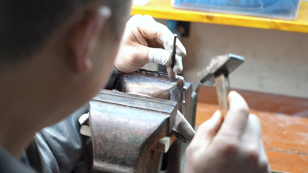 金永才自幼喜爱民间传统艺术,18岁开始学习并致力于金、银、铜饰品制作,29岁正式拜乌铜走银制作技艺第五代传承人李加汝为师,系统学习这门传统技艺。