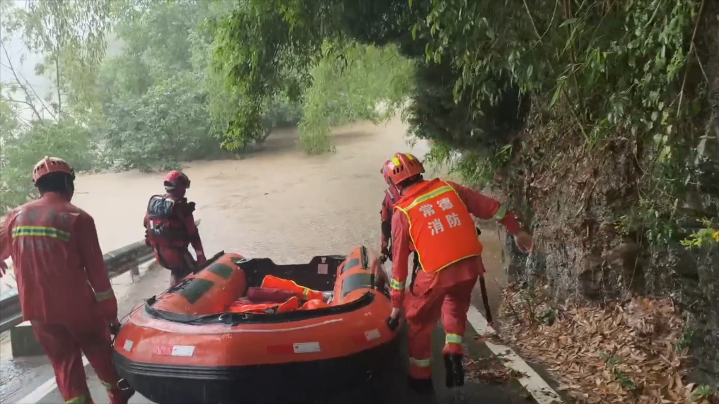 受持续强降雨影响,湖南部分乡镇出现内涝,常德市桃源县是内涝较为严重的区域之一。22日上午,桃源县观音寺镇30多名村民被困家中,接到报警后,桃源县消防救援大队立即前往救援。在道路已被洪水淹没的情况下,消防员小心驾驶橡皮艇到达被困村庄位置,最终成功将32人就地转移到安全地带,将3人带回并转移到镇上。