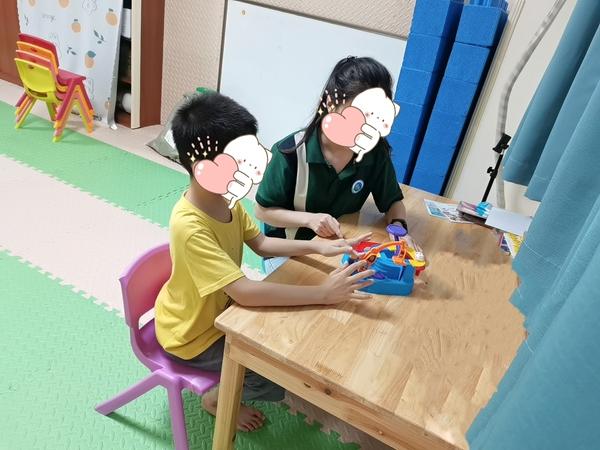 4月8日,春暖新希望幼儿园,一名孩子接受融合服务。受访单位供图