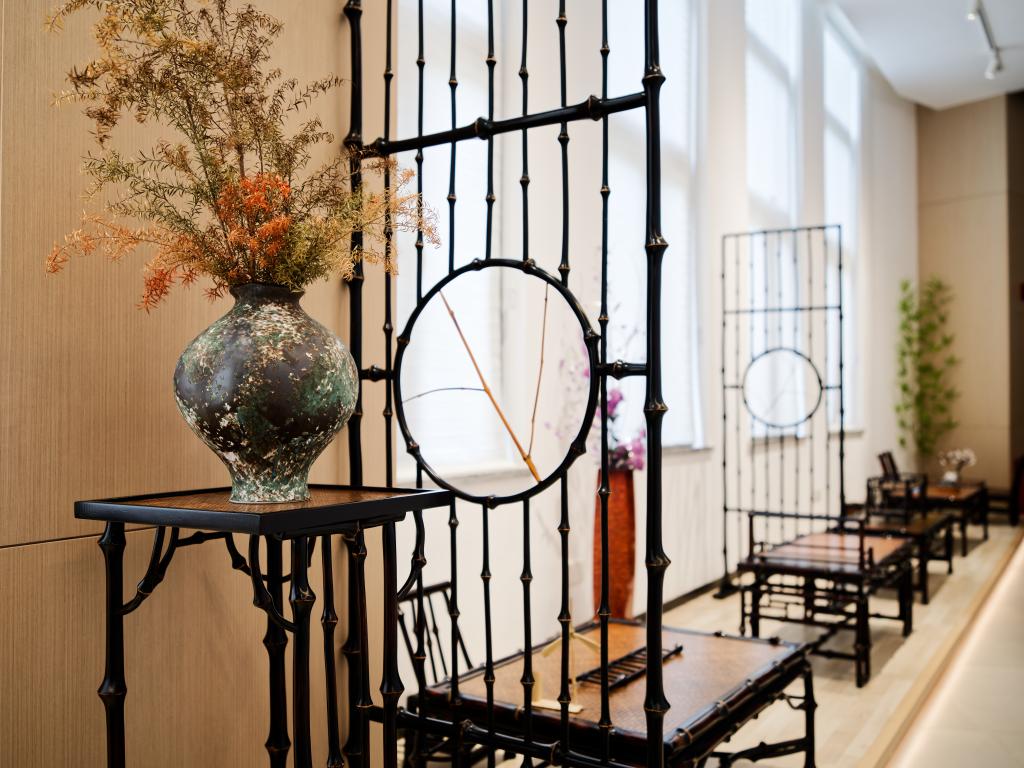 这是5月29日在位于大关县的云南羲之竹文化科技有限公司拍摄的筇竹家具。