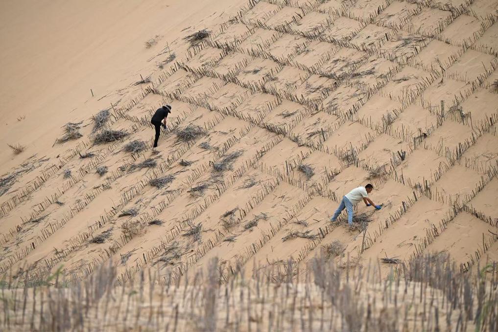 在地处黄河“几字弯”南岸的鄂尔多斯市达拉特旗中和西镇官井村防沙治沙作业区,村民裴飞和邻居们一起参与沙柳、柠条平茬工作。“我们村的土地就在‘三北’工程项目区内,我们通过‘以工代赈’的方式完成灌木平茬任务,每户村民一年的劳务收入能达到10万元以上。”裴飞说。