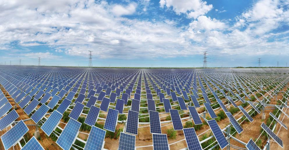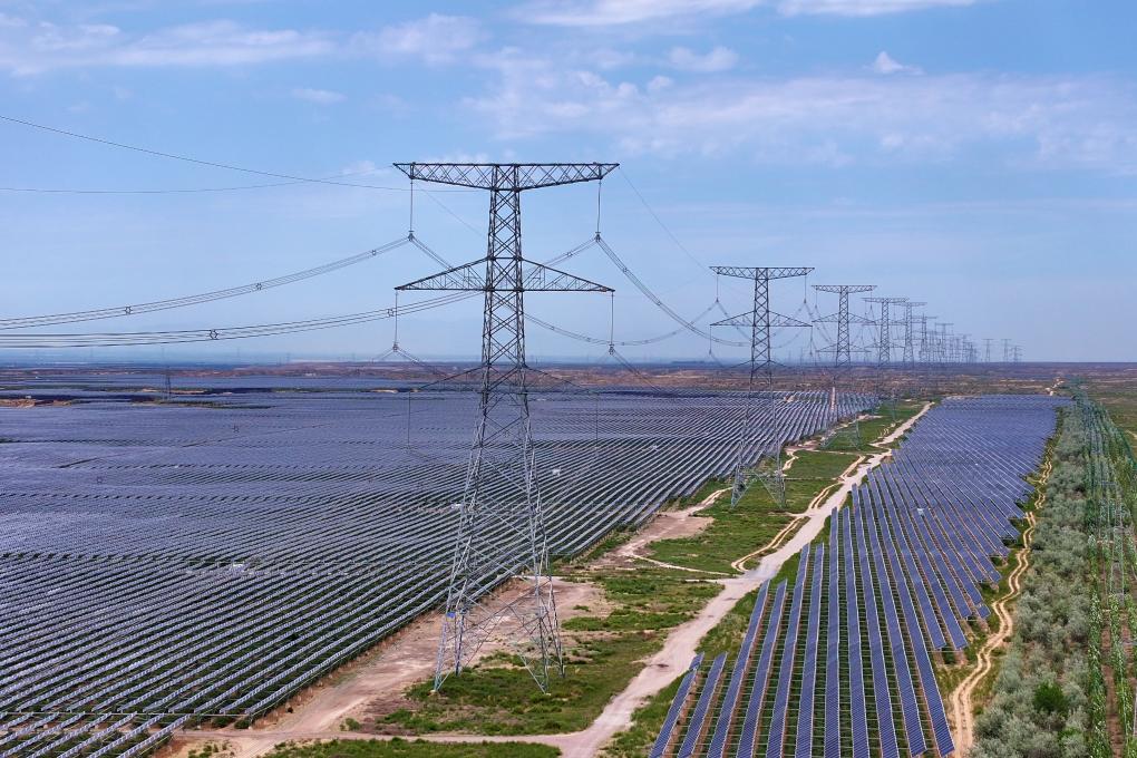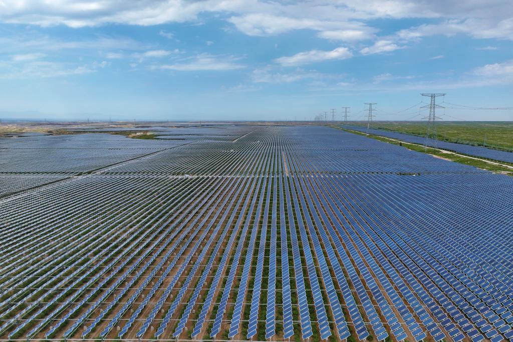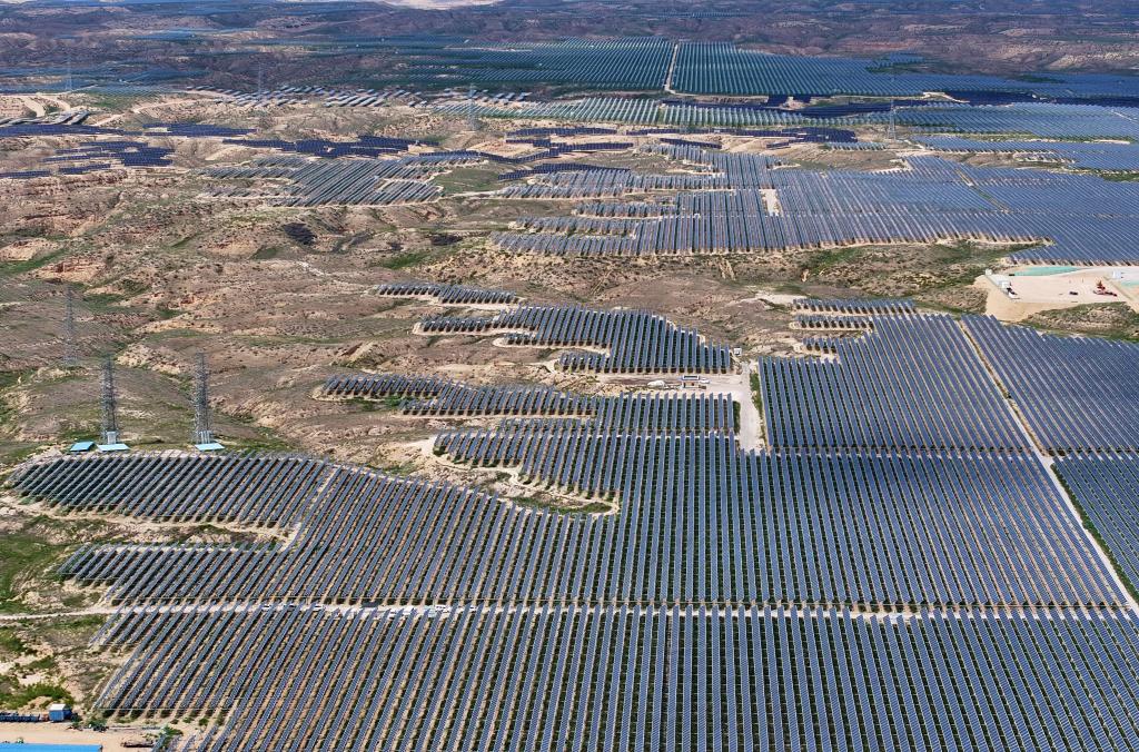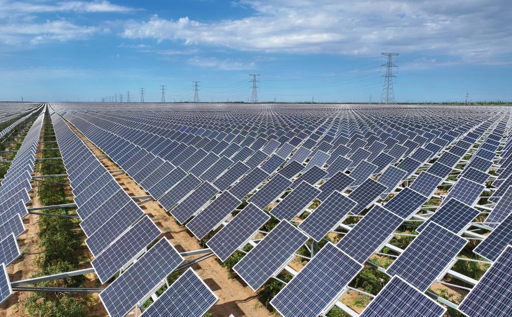 近日,宁夏回族自治区银川市兴庆区月牙湖乡的农光一体光伏电站将太阳能光伏板发电和枸杞种植相结合,构成了一幅绿色发展的新景象。