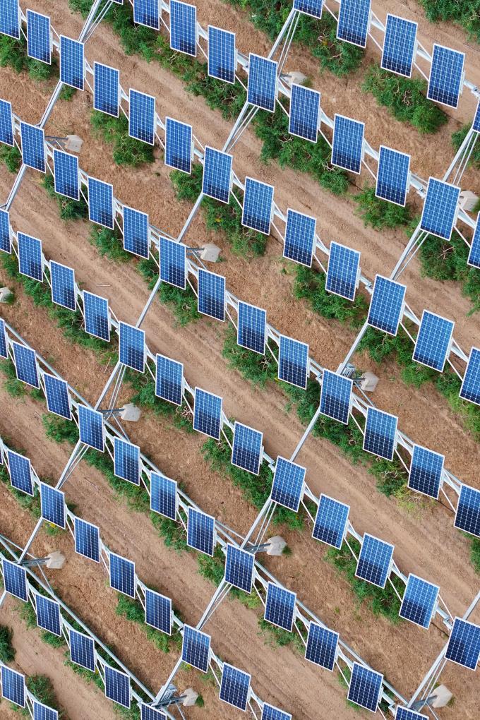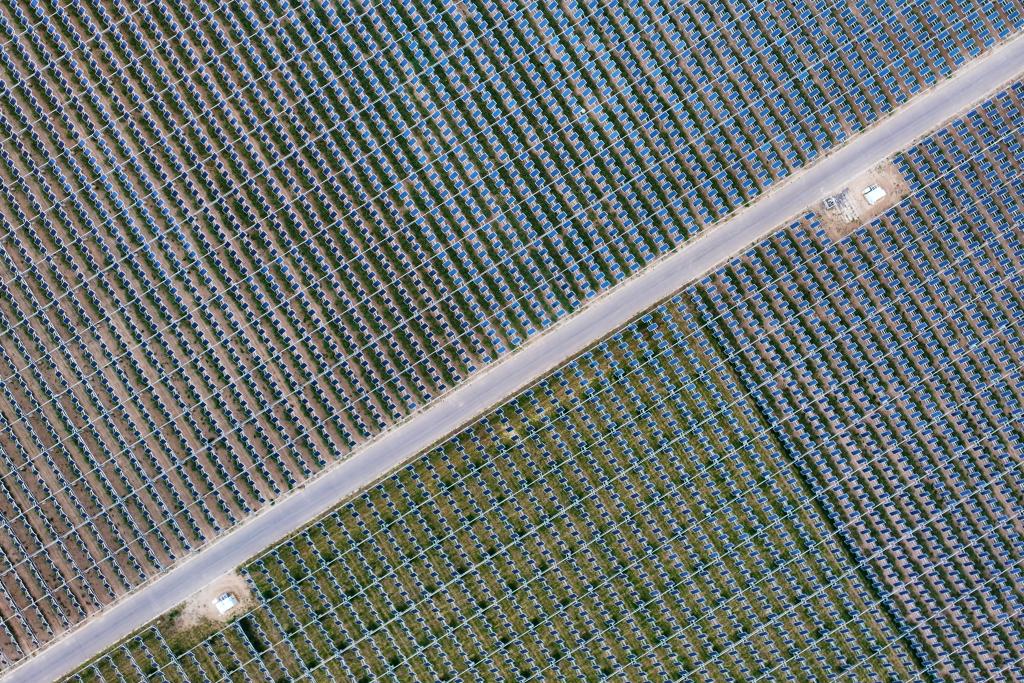 以上图片:2025年7月17日在宁夏回族自治区银川市兴庆区月牙湖乡拍摄的农光一体光伏电站景色。(无人机照片)CICPHOTO/袁宏彦 摄