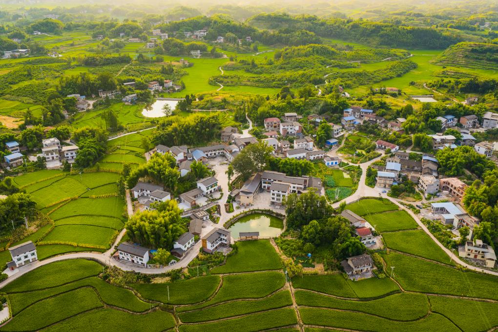 以上图片:2025年7月22日,在重庆市梁平区屏锦镇万年社区,“千石坝·万年稻里——巴蜀美丽庭院示范片”项目改造后的村民房屋错落有致,美不胜收。(无人机照片)CICPHOTO/高小华 摄