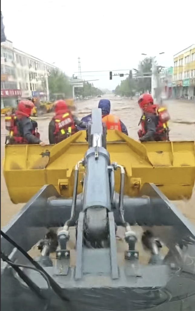 “看到一个救一个!”王天宇是个铲车“老司机”,但在深水中操控、行进,还要保证被困人员安全踏入铲斗,难度不小。