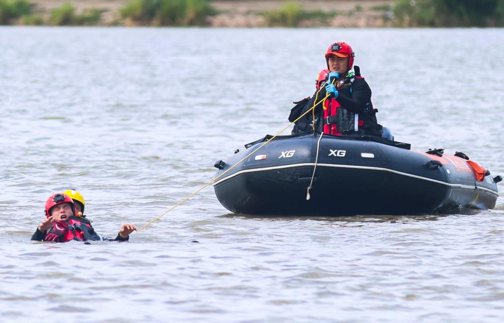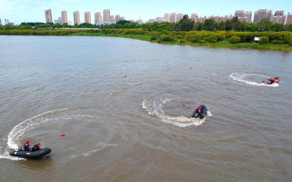 8月5日,黑龙江省森林消防总队哈尔滨市支队在松花江哈尔滨段举行水域救援演练,检验队伍练兵备战水平,提升综合实战救援能力。