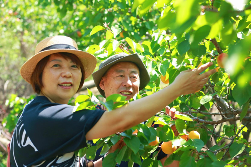 收获季杏成熟,吸引大批游客采摘、休闲旅游。 新华网发(呼和浩特市融媒体中心记者王中宙 摄)