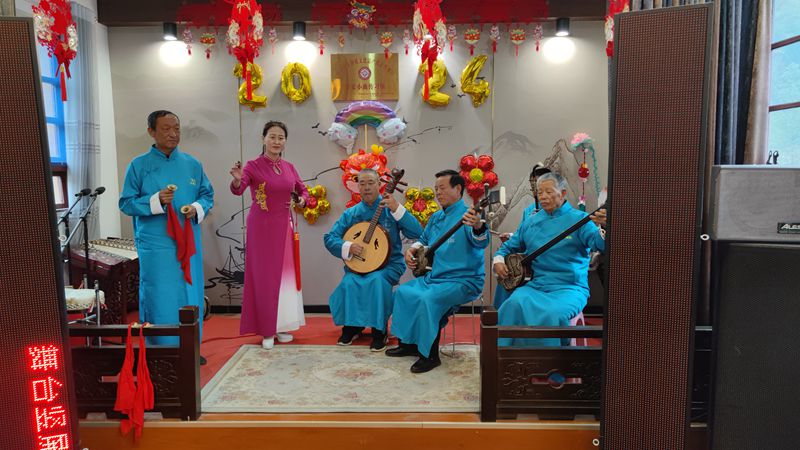 10月16日,秦安县集贤村文化活动室内,集贤文艺剧社的社员们正在排练演唱新编秦安小曲。新华网发(新甘肃·每日甘肃网记者 郭林玉 摄)