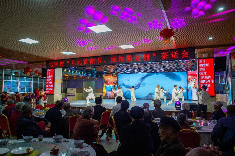 潍坊寿光屯田西村举办“九九重阳节、浓浓敬老情”茶话会现场。新华网发(潍坊寿光市文明办供图)