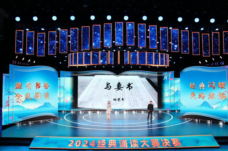 “潍有书香”全民阅读系列活动之“典耀更好潍坊”经典诵读大赛决赛现场。新华网发(潍坊文明网供图)
