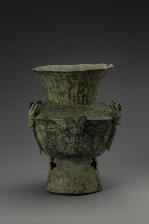 此外,龙形附件还有盘龙的形态,例如盘龙器盖,其龙角像羊角,身躯完整;以及多呈扁平状,张口露齿的简化龙形饰,有的为插件,头部呈方形,身躯简化为卷曲状。