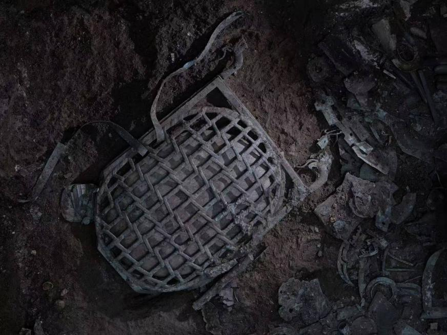 另一件青铜“重器”,即龟背形网格状器上,同样有着爬龙附件。这种龙形附件与龙首权杖、爬龙器盖等相似,着重表现龙首而简化身躯。龟背形网格状器的四个角上都饰有龙形装饰,且每个龙头上均顶有一个牙璋形器。牙璋并非三星堆独有,而是流行于新石器时代晚期到夏商时期的中原地区,是二里头文化中具有代表性的礼仪性器物。