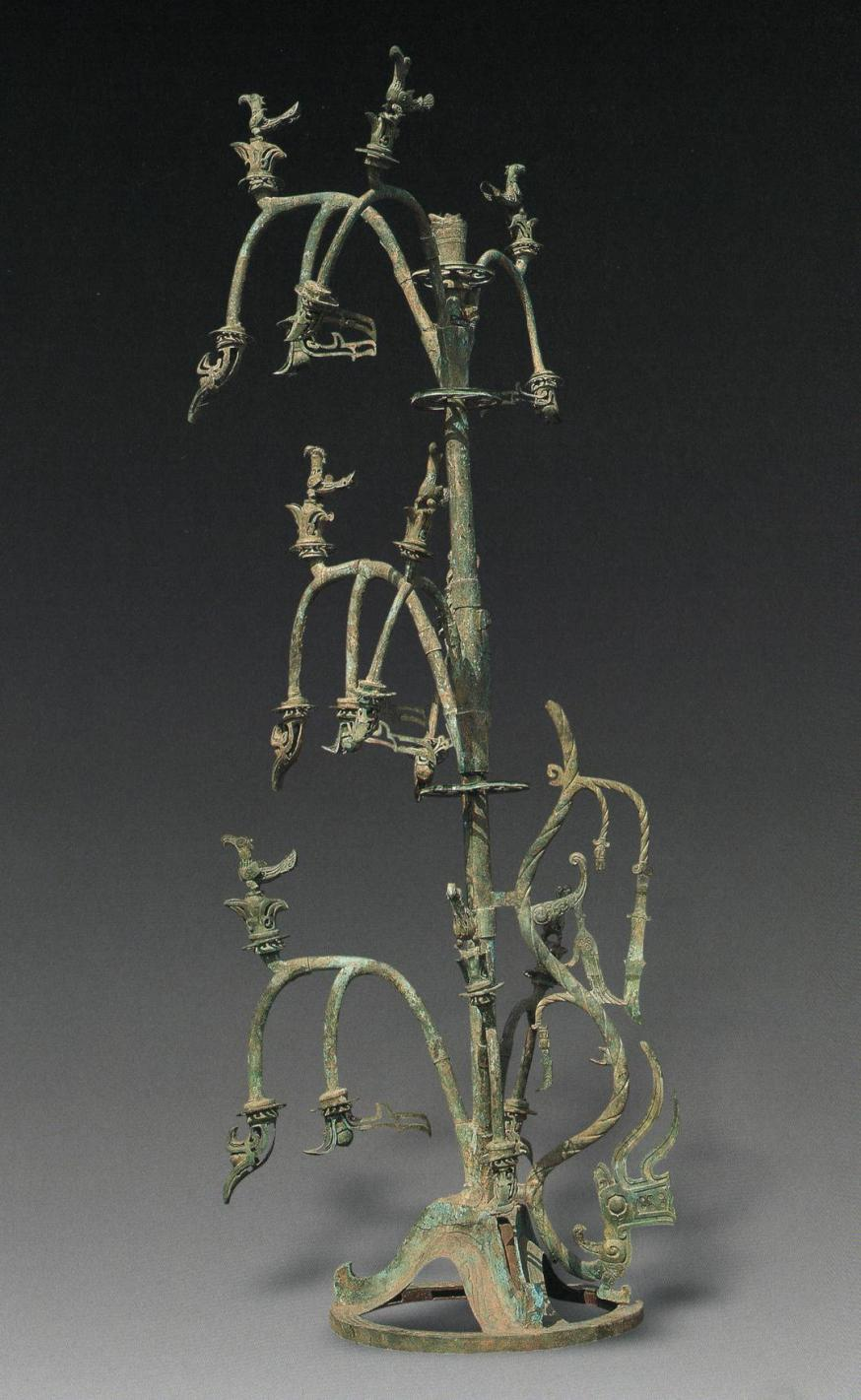 而1986年于二号坑出土的青铜神树,则有着在三星堆龙形附件中具有代表性的爬龙形态。青铜神树的树枝共分为三层,每层树枝均站立有神鸟。一条身体纤细且灵动的爬龙,沿着树干蜿蜒而下。龙头位于最下方,前爪置于底座之上。“如果未来修复复原,估计这条龙的长度与树干应该差不多,能够达到4米以上。如果真是如此,那它就是三星堆最长的龙,也是同时期我国发现的最长的龙。”许丹阳说。