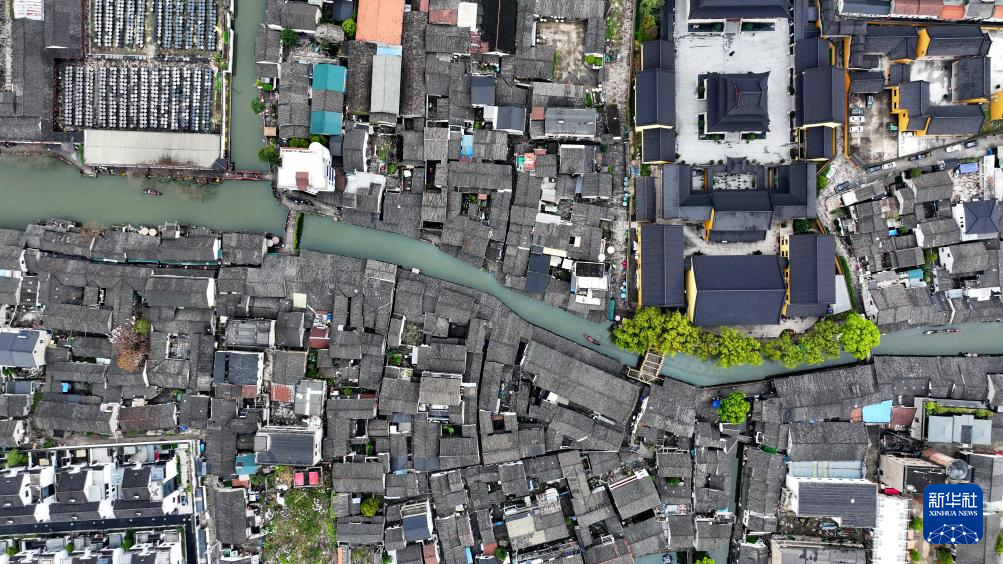 这是3月29日拍摄的安昌古镇一景(无人机照片)。