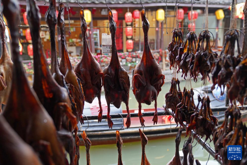 3月29日在安昌古镇拍摄的腊味食品。