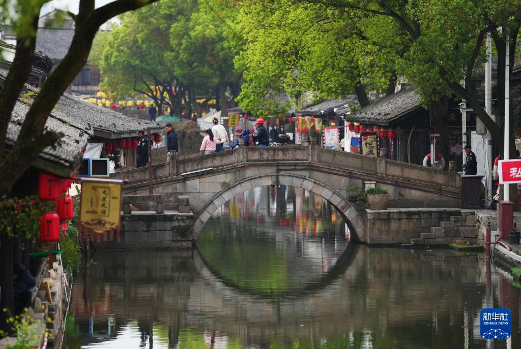 3月29日,游客走在安昌古镇的街市上。