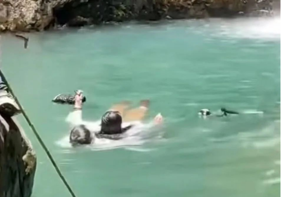 来不及多想,郑志军扔了手机就跃入水中。近10米的深潭,水流冲击力很强,也十分冰冷。靠着常年锻炼练就的耐力,郑志军托起落水者向岸边游去。现场其他游客组成临时救援队,拿着木棍、树枝帮忙接应。