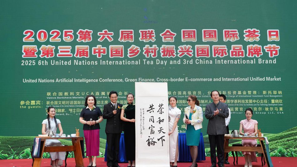由联合国艺术基金会与四川省东西方文化交流促进会共同主办的“2025第六届联合国国际茶日暨第三届中国乡村振兴国际品牌节”近日在四川省成都市举办,联合国艺术基金会主席、“2025第六届联合国国际茶日”活动主席车夫,联合国教科文组织直属协会会长玛赫耶塔,联合国高级官员斯托岩纳,法国茶叶协会会长杰里米·塔门,四川省东西方文化交流促进会会长唐新江及中外嘉宾、茶企代表、“中华雷锋志愿者”等近千人共同出席活动。