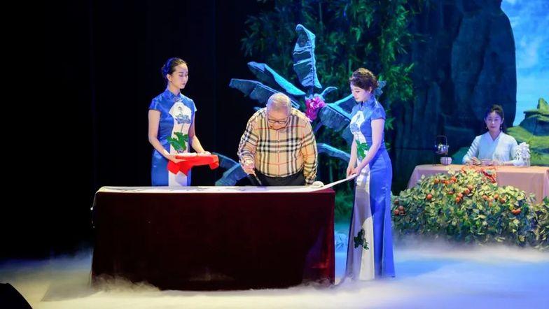 诗会在文化传承方面也有着深远的意义。特别设置的“诗歌串联”环节,朗诵艺术家们诵读吉狄马加、胡弦等诗人的经典诗作,充分展现了长江文明对诗歌的滋养。闭幕歌舞《长江夜未央》融合茶艺、汉服秀等非遗元素;吉狄马加、雷平阳等现场挥毫泼墨,为诗会增添了浓厚的书画雅韵,以“夜未央”意象传递了文化传承的永恒性。