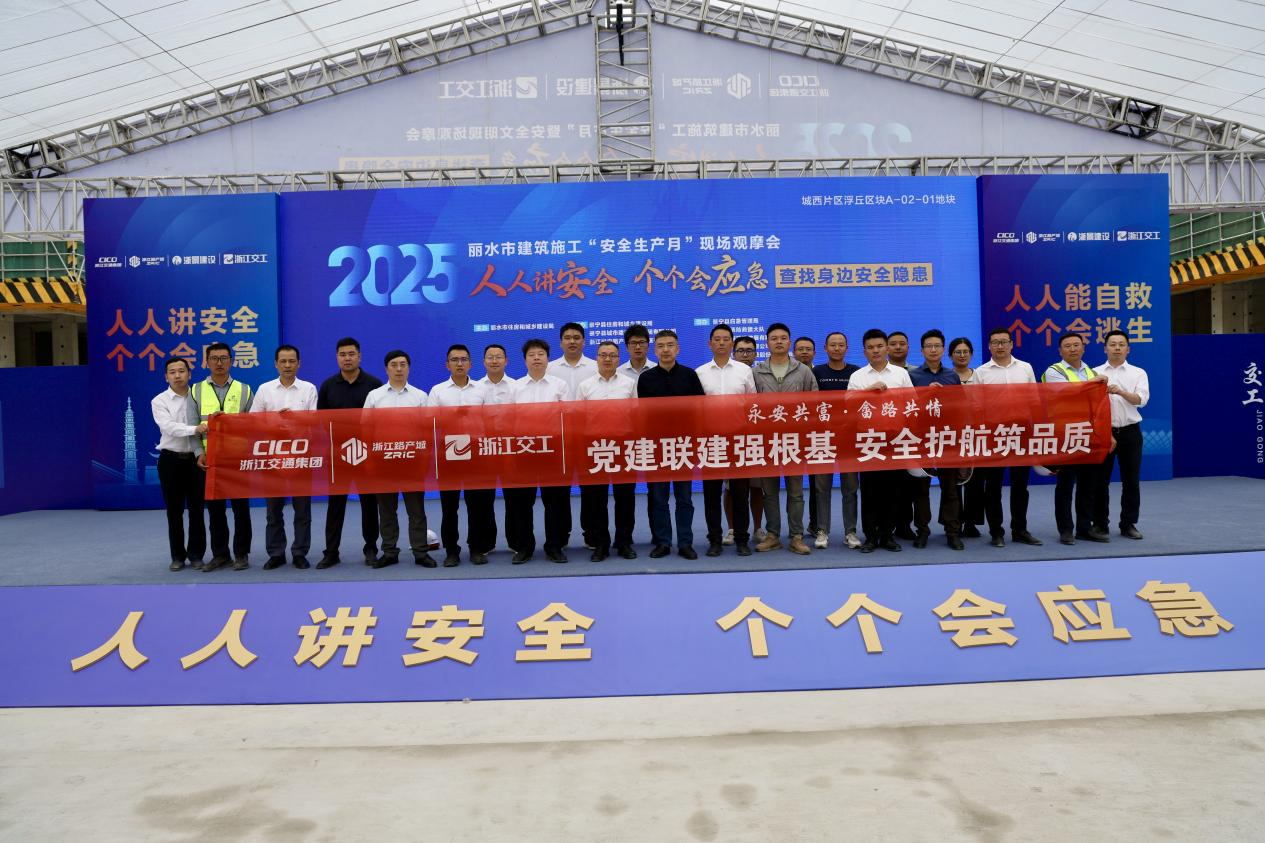 近日,2025年丽水市建筑施工安全生产月现场观摩会在浙江省交通集团下属浙江交工集团承建的景宁浮丘未来社区项目成功举办。活动通过“主会场+分会场”“线下观摩+线上直播”的形式联动全市,全面展示建筑施工领域在智慧化、标准化、系统化安全治理方面的新成果、新方向。