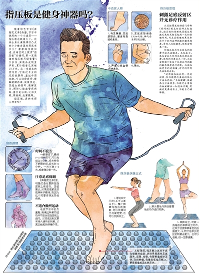 电视节目中的负重跑、跳绳这种激烈运动并不适合在指压板上进行。对足底反射区要有持久缓和的刺激,才真正能起到保健作用。