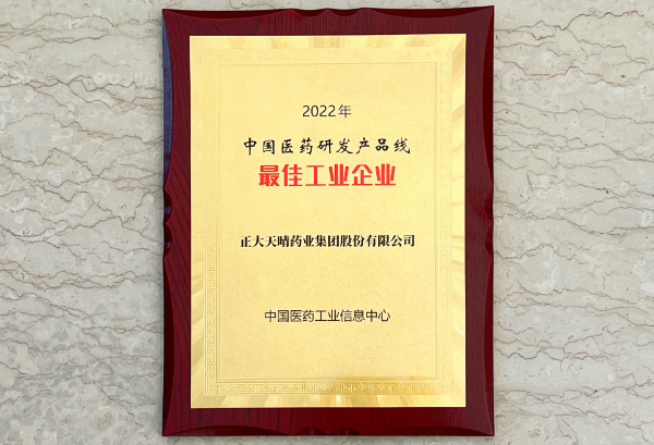 正大天晴药业集团获评“中国医药研发产品线最佳工业企业”