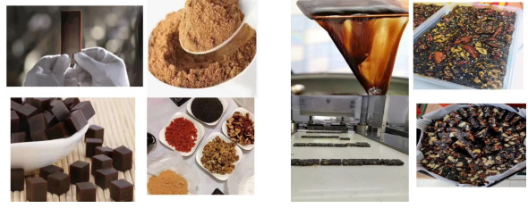 阿胶棕色质脆,常被加工至块状。作为药食同源的中药和女性喜爱的保健品,生活中阿胶常辅以枸杞、黑芝麻、核桃仁、大枣制作成阿胶糕,用于补血养颜。