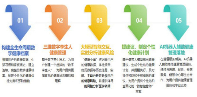 这其中的关键一步,就是今年跟华为云合作,落地“健康小美”数智健管师。“健康小美”,是一款利用生成式AI技术和精准的数据驱动服务来主动对用户的身体情况进行监测、检测和预测的机器人,一旦落地成功,将是国内首款健康管理AI机器人。简单来说,通过这款产品,用户在上传个人生活习惯、运动情况等信息后,可一键生成适配自己的数字健康档案、健康体检方案和预防措施。这个档案还可以通过三维数字孪生技术,为用户创建一个虚拟的“数字孪生体”,提供更加直观的健康状态模拟和理解,以跟踪自己身体的变化。