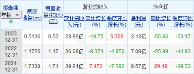 而通过梳理过往几年的财报信息可见,迈克生物业绩呈下滑趋势,其中2021年至2023年,公司实现营收分别为39.81亿元、36.08亿元和28.96亿元。