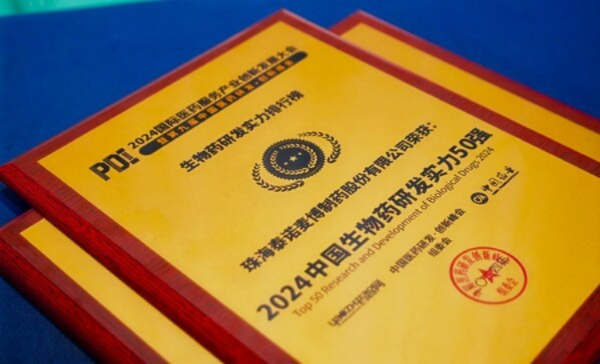 日前,2024年国际医药服务产业创新发展大会暨第九届中国医药研发•创新峰会上,珠海泰诺麦博制药股份有限公司(以下简称泰诺麦博)获“2024中国生物药研发实力50强”。