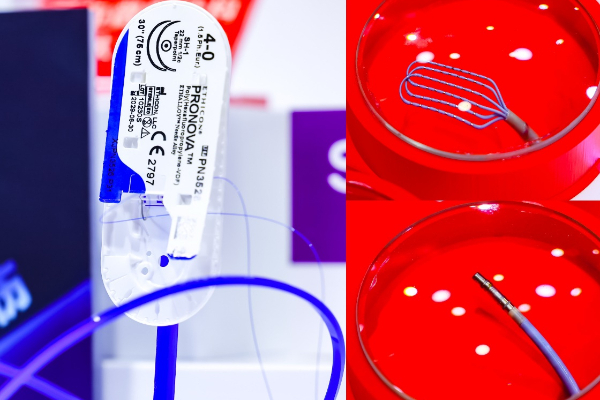 在心脑血管疾病这一领域,强生医疗科技带来四款首秀展品:心力衰竭治疗领域的重磅创新产品Impella CP with SmartAssist介入式左心室辅助泵,这种短期机械循环辅助装置通过微创方式经皮置入,实时收集心室内的信号数据,并通过智能算法,帮助心脏恢复正常功能,提高患者生存率。创新桨型设计一次性使用磁定位标测导管OPTRELL,作为一款多电极磁定位标测导管,该款产品拥有实时激动矢量箭头指示和TRUEref降噪技术,是强生医疗科技首款桨型设计的标测导管。拥有智能精准压力指示和多孔灌注技术的多电极空腔导管STSF,这一全球首发产品是强生医疗科技首款本土化压力消融导管,展现了中国智造与强生全球创新资源深度融合的最新成果。主要应用于心血管微创外科手术的强韧守护连续缝合新一代单股不可吸收性缝线普诺瓦,其成结更紧密、柔软不绕圈和强韧抗损伤的特性为手术中心肌软组织缝合和血管吻合等带来了便利。
