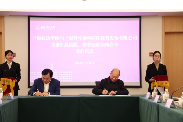 12月16日,上海蓝生脑科医院投资股份有限公司与上海杉达学院共建附属医院、教学医院战略合作签约仪式在杉达学院学术交流中心举行,标志着双方将全面深化医疗、教学、科研等领域的合作。杉达学院校长陈以一、蓝生脑科董事长卓立强出席仪式并致辞。杉达学院国际医学技术学院院长徐燕、党总支书记丁俭、副院长夏海鸥、副院长张静,蓝生脑科总经理刘轶永、副总裁叶文琴,蓝生脑科旗下上海天佑医院院长蔡剑飞、总经理卓立峰,上海蓝十字脑科医院院长项耀钧、总经理朱敏,上海蓝生宏德医院院长周宏宇、总经理林志强等参加仪式。丁俭主持仪式。